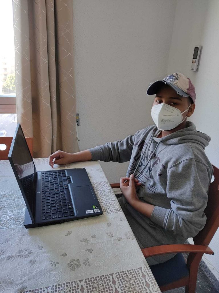 Alexi tiene su ordenador portátil para poder seguir sus clases