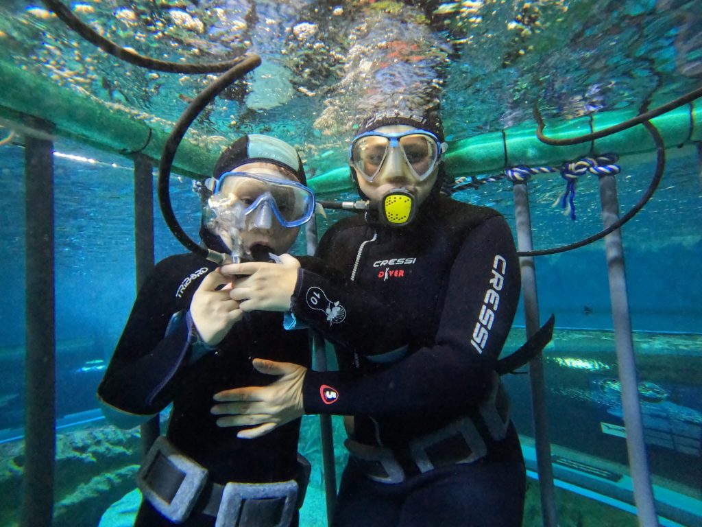 Viajó a Almería pensando que sería una escapada a la playa… pero allí le esperaba su deseo más soñado. En el Acuario de Almería, Esteban no solo vio tiburones: ¡se metió con ellos! Equipado con su traje de buceo y junto a su madre, vivió la experiencia de observarlos desde el agua, tan cerca que apenas podía creerlo.
