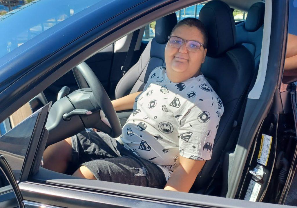 La primera vez que hablamos con él nos dejó claro que su gran deseo era montar en un Tesla y tener un ordenador profesional, ya que quiere ser programador. Así que nuestras responsables de deseos lo organizaron todo para darle una gran sorpresa. ¡No solo montó en Tesla, sino que le llevamos a un concesionario para que él mismo eligiera el coche en el que montar durante toda una mañana!
