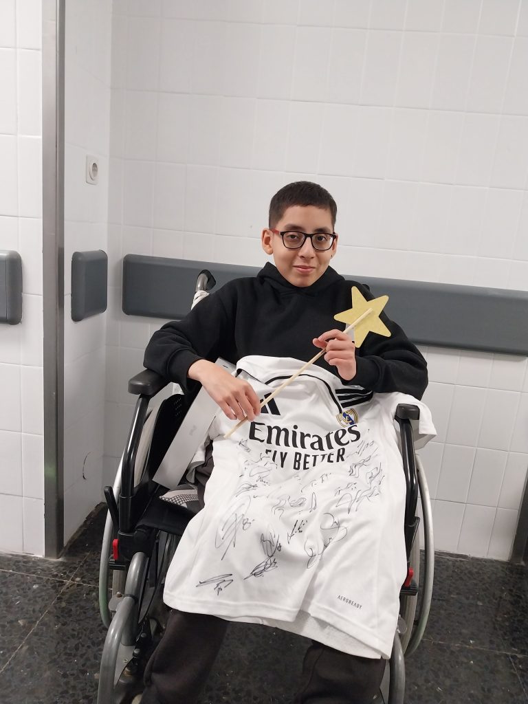 Gracias a la colaboración de su psicooncóloga y al apoyo de la Fundación Real Madrid quisimos darle una sorpresa que le devolviera la chispa y la motivación. En una cita inesperada, Mathias encontró nuestra varita mágica con un regalo muy especial: ¡un iPad! Ahora podrá entretenerse y distraerse donde sea, especialmente en los largos días de hospital. Pero eso no fue todo. Con la app del Real Madrid, le enseñamos cómo hacer un tour virtual por el Santiago Bernabéu, recorriendo cada rincón del estadio como si estuviera allí.