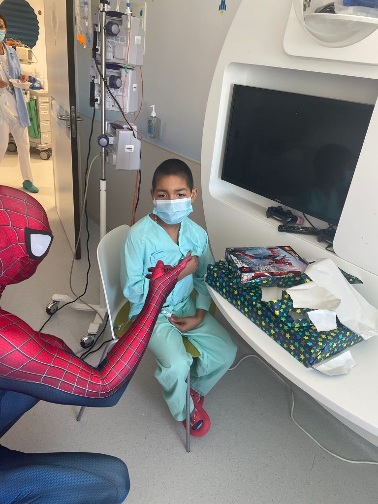Gerardo, que está enfrentando con valentía una enfermedad oncológica, es un gran fan de Spiderman y soñaba con conocerle. Desde la Fundación contactamos con él, que no dudó en acudir a nuestra llamada para sorprender a Gerardo.