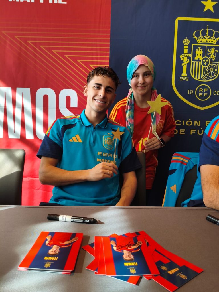 Valeria tiene 12 años y acaba de terminar su última sesión de quimio. Ha sido un camino duro, pero ella sigue adelante con mucha fuerza. Cuando hablamos con ella, nos contó que su mayor deseo era ver a la Selección Española y conocer a sus ídolos, Fermín y Unai Simón.